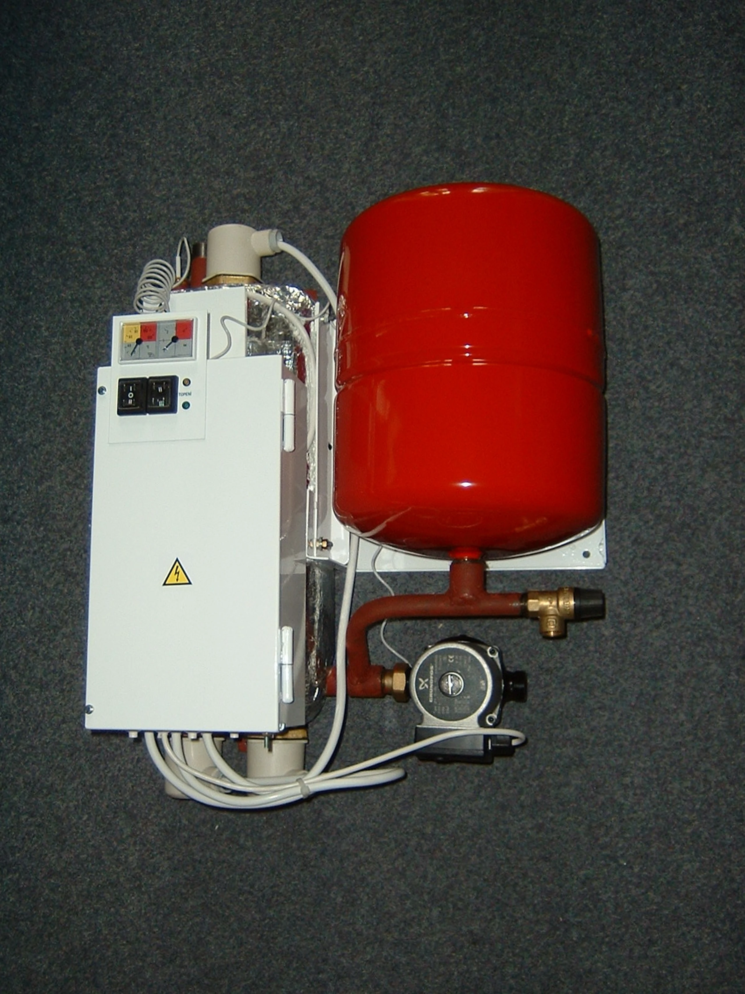 Typ 3 – elektrokotel s elektrovýzbrojí, čerpadlem, manotermem, expanzní nádobou a pojistným ventilem
